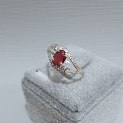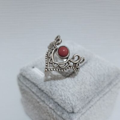 Par de Brincos Coroa Trabalhada Pedra Vermelha