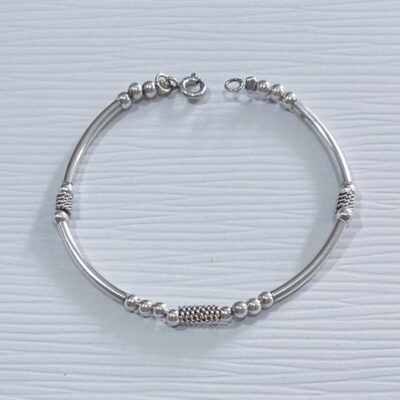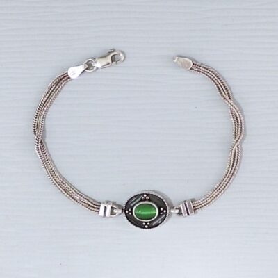 Pulseira Fio Trançado Duplo e Detalhe Pedra Verde