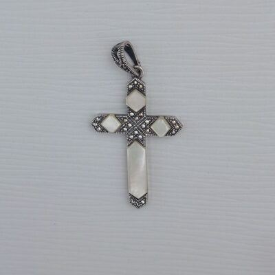 Pingente Crucifixo Com Madrepérola E Marcassitas