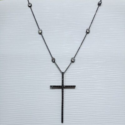 Corrente Com Zirconias e Crucifixo Zirconias Negras em Ródio Negro