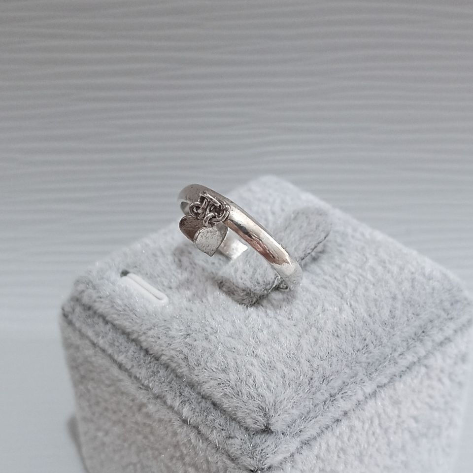 Anel Prateado com 2 Pingentes Coração