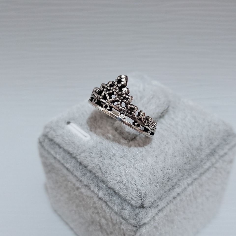 Anel Prateado Coroa Trabalhada M02