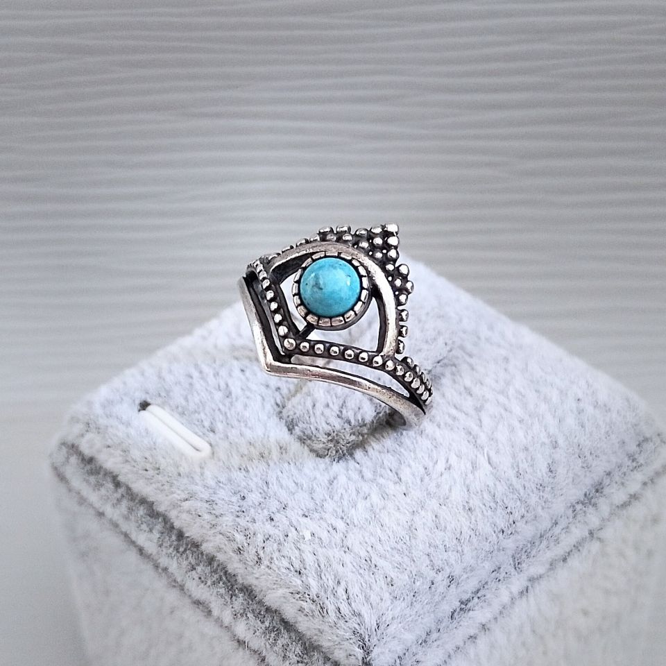 Anel Prateado Design Indiano M03 com Turquesa Natural
