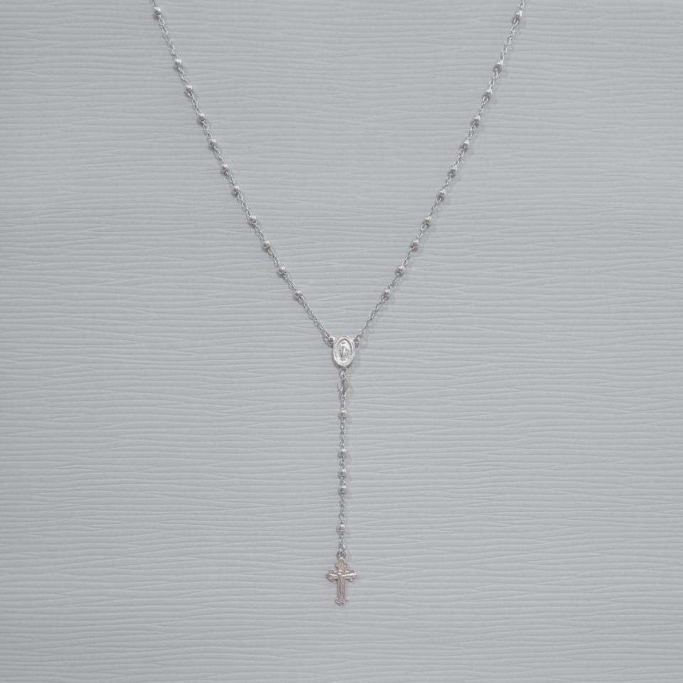 Corrente Prateada Terço com bolinhas e crucifixo 3.0 M01