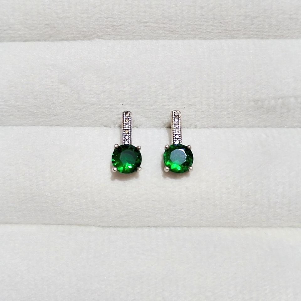 Par de Brincos Prateado Zircônia Verde 5.0 e micro-zircônias cristais