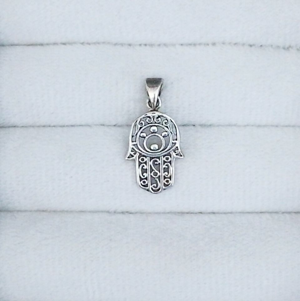 Pingente Prateado Mão de Fátima Hamsá Tam. P M01