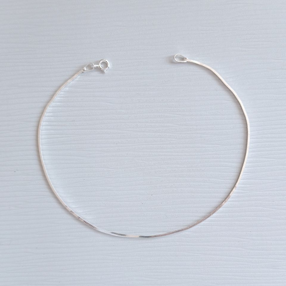 Tornozeleira Prateada corrente rabo de rato diamantado